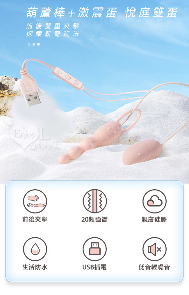 ‧硅膠彈性葫蘆棒+震動蛋,可個別獨立控制開關隨心所欲刺激。